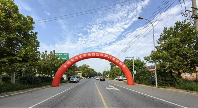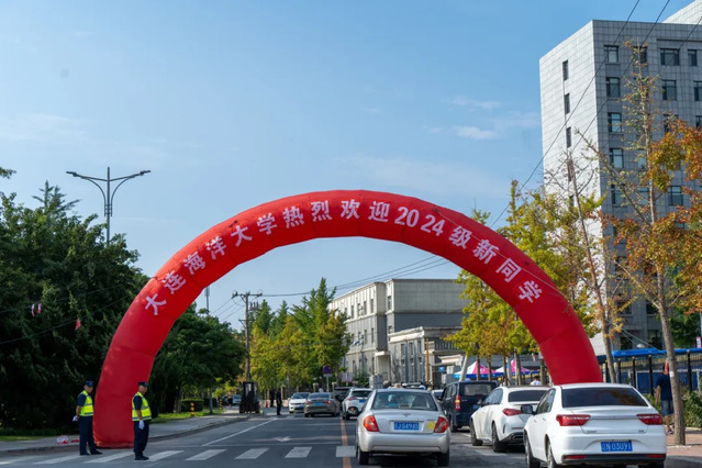 为方便引导新生入校,今年学校提前在黑石礁街道、营平路设置标识“大连海洋大学热烈欢迎2024级新生”的多重拱门,提示引导新生私家车辆前往黑石礁校区、大黑石校区报到。