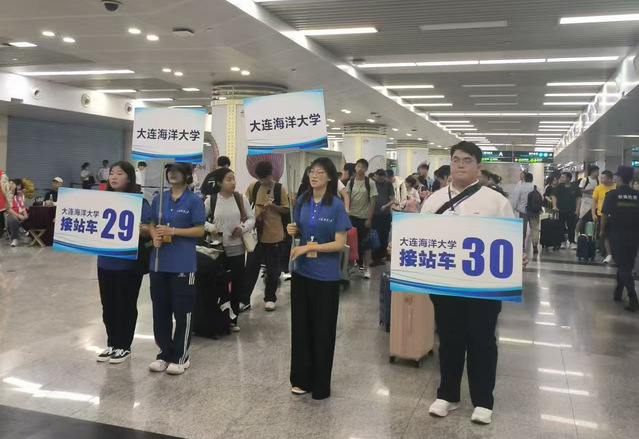 为做好2024级新生报到接站服务保障工作,为广大来连新生及家长展现大海大细致周到的迎新姿态,学校周密部署,与大连周水子国际机场、大连站、大连北站、瓦房店西站、瓦房店汽车站积极对接,通力协作,设置新生接站点,手持引导牌的志愿者逆着人流而上,用最温暖的笑容和饱满的热情迎接萌新和家长们的到来,协助他们搬运行李,引导他们乘坐迎新车辆,志愿者们用他们的一举一动,向新生和家长传递着温馨的信息:“大海大欢迎你们”。报到当天,共开展志愿服务3000余人次,有力保障了我校新生报到工作。