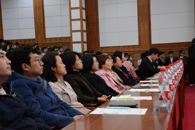 校党委学生工作部学生管理科科长乔彦娇、校团委副书记张峰峡应邀担任评委,海洋科技与环境学院党委书记谭利娟、党委副书记刘宁、纪委书记郑丽娜、全体辅导员及200余名学生一同观看本次比赛。