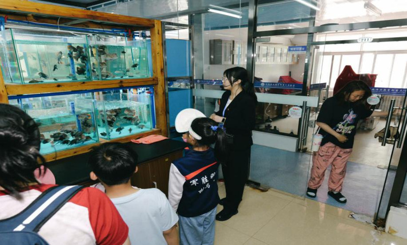 本次活动设有现场参观、海洋肌理画DIY及黑石礁湾赶海三项主题项目。学生志愿者带领大家参观了校水产设施养殖与装备工程研究中心、北方海洋数据应用工程中心,让小学生们畅游在海洋科技知识的海洋。
