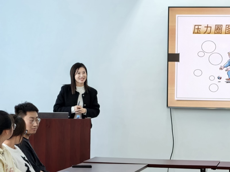 在随后的交流环节,郭双教授以温和而有力的引导,鼓励同学们敞开心扉,分享当下所面临的压力。随着对话的深入,诸多真实困境逐渐浮现——有的同学正为毕业论文的反复修改而焦虑,也有的因亲密关系中的波动而陷入困惑。郭双教授认真倾听每一份心声,并以“认知重构”与“情绪隔离”为钥匙,为大家解开困局。她指出,论文压力背后常隐藏着对“完美”的执念,情感困扰则多源于对“不确定”的抗拒,学会区分“可控”与“不可控”,并主动在困境中寻找积极意义,是走出情绪漩涡的关键一步。